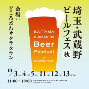 埼玉の人気ブルワリーが所沢・ところざわサクラタウンに集結。 2025年10月3日(金)~5日(日)、11日(土)~13日(月・祝)の計6日間、キッチンカーグルメやフリーライブも楽しめる“埼玉愛”満載のビアフェス埼玉・武蔵野ビールフェス in サクラタウン 2025秋が開催されます。会場はキャッシュレス決済のみ、昨年から導入された予約テーブルエリアも拡大。詳細・チケット案内は公式サイトで順次告知予定です。