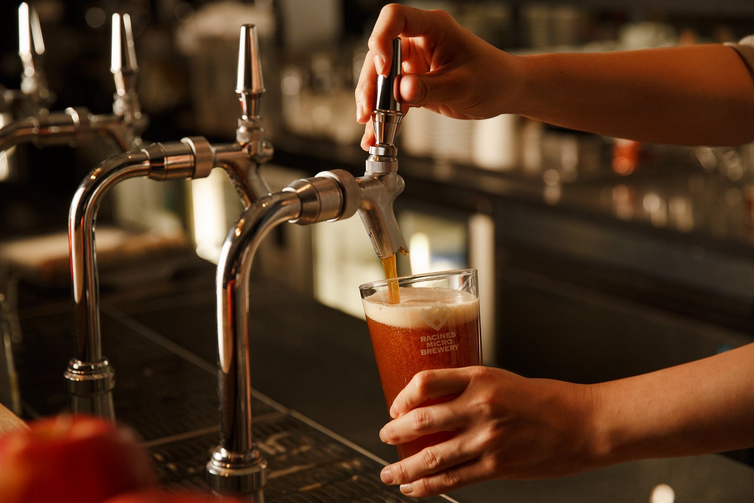 「焼き林檎アンバーエール」は、焼き林檎をイメージしたアンバーエールです。カラメルのような香ばしさと林檎のフルーティーさ、シナモンのスパイス感がバランスよく感じられる味わいを目指し、寒い季節にゆっくりと楽しめる一杯として設計しました。アルコール度数は5.5%とし、RACINES MICRO BREWERYで定番として提供しているセゾン「RACINES FIRST SEASON」(約4.8%)よりも、やや高めに設定しています。