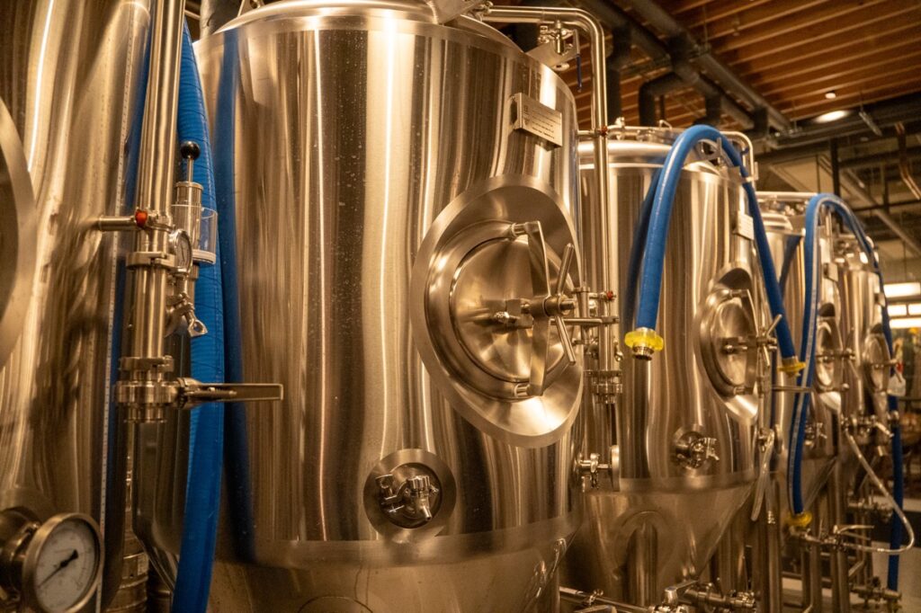 店内に足を踏み入れると、まず目に飛び込んでくるのは360度のアイランドバーカウンターとその奥にある巨大な醸造タンク。ここでは、工場でしか味わえなかった「できたて・無濾過」のビールを楽しめます 。