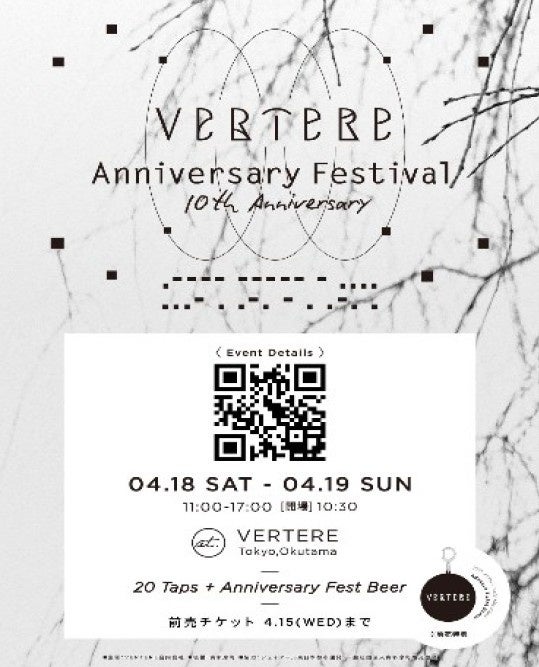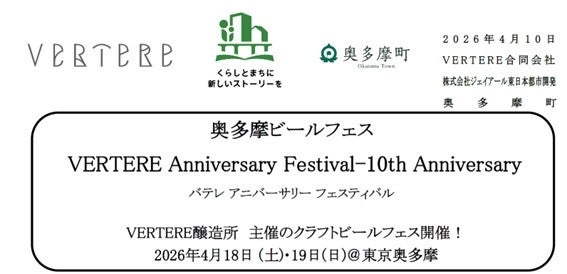 クラフトビールブルワリーVERTERE(バテレ・奥多摩町)は2026年2月で、醸造開始から10周年を迎えました。この節目を記念して、奥多摩の醸造所敷地にて「VERTERE Anniversary Festival」を開催いたします。