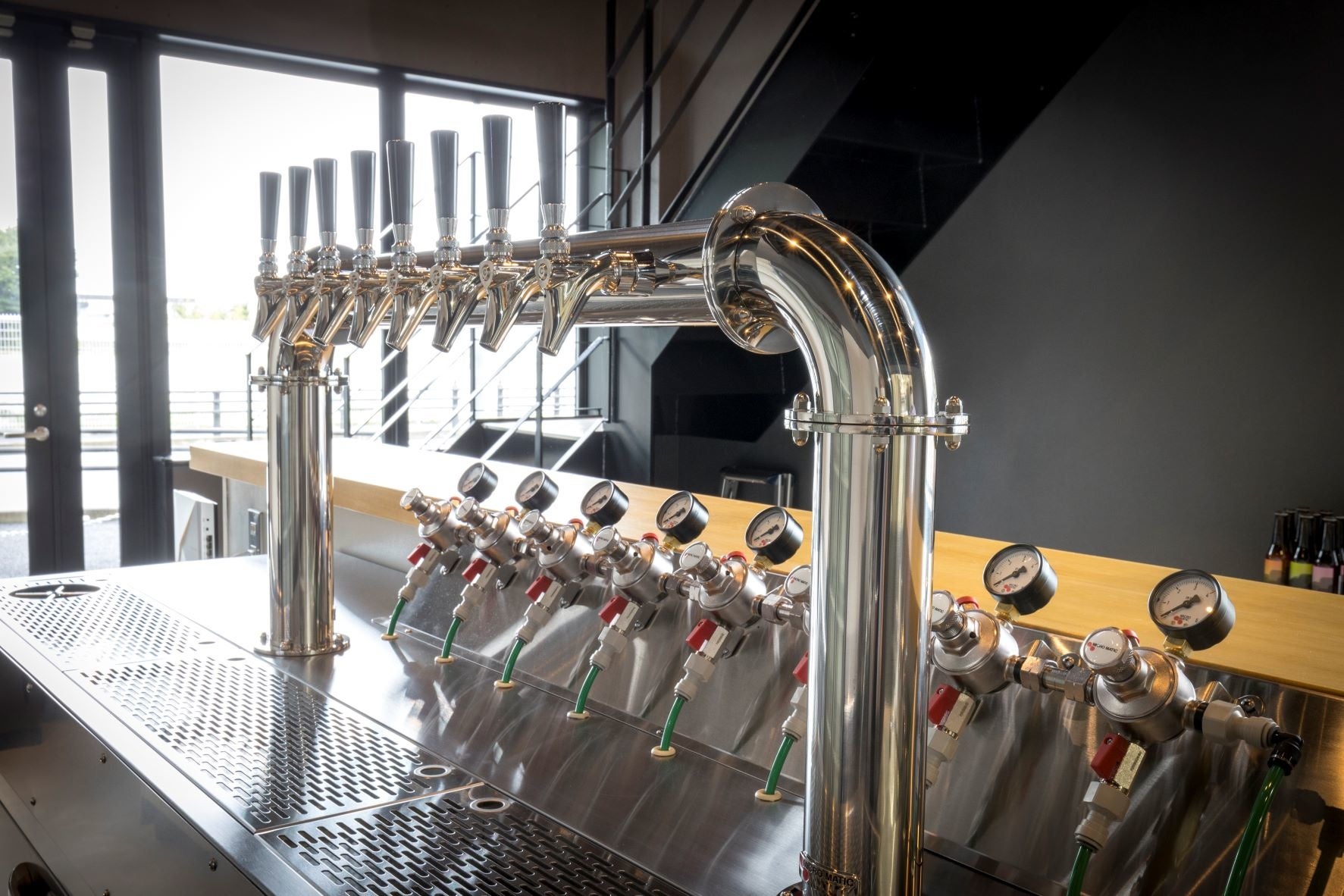 立飛ブルワリーには、貯蔵タンクから直接提供されるフレッシュなビールをその場でお楽しみいただけるタップルームが併設されています。1階部分はカウンタースタンディングスタイルで、2階には、醸造工場内が見渡せる造りで、小グループのビールセミナー&テイスティング等の利用も想定したプライベートエリアが設けられています。営業時間は11:00-18:00 火曜、水曜日定休。クラフトビール各種は、2022年3月まで開業特別価格 1杯 ¥500(税込)にて提供。