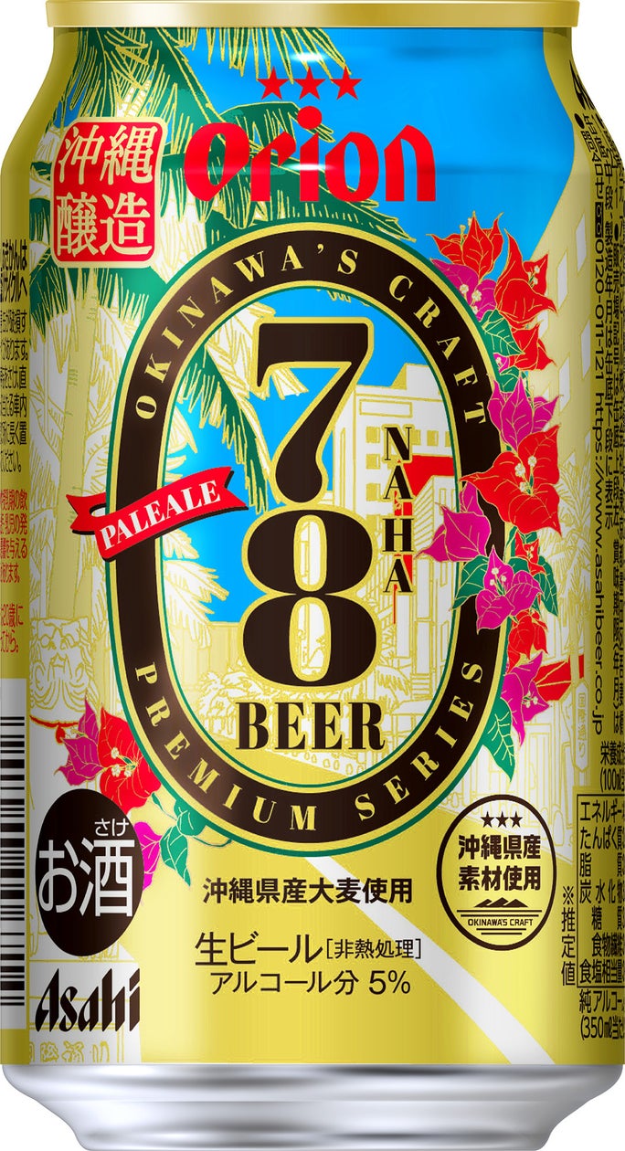 『アサヒ オリオン78BEER』は、那覇市が市制100周年を迎えたことを記念し、那覇市の一部商店街・通り会との共同開発により誕生しました。花々を連想させる華やかな香りが楽しめる、上面発酵のペールエールスタイルのプレミアムクラフトビールです。
