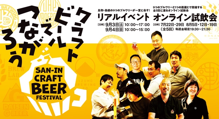 鳥取・島根の9つのブルワリーが集結し、オンラインとリアルで楽しむビアイベント「山陰クラフトビアフェスティバル」。7月22日から8月19日に開催されるオンライン試飲会の募集に続き、9月3日(土)・4日(日)に島根県江津市の「神楽の里 舞乃市」にて開催するリアルイベントの詳細が決定しました。