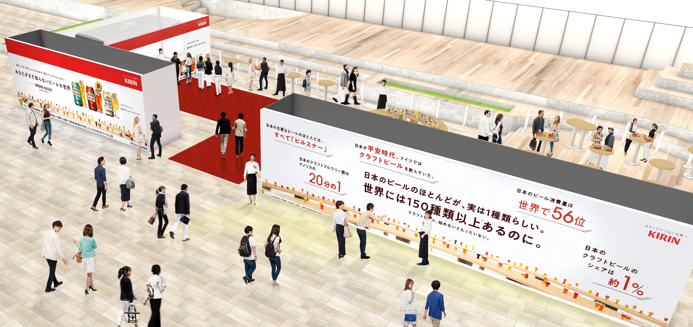 さらに、日本や世界のビールの「意外な真実」を多数掲示する9メートルを超える巨大LEDスクリーンも 設置。ビールに関連するさまざまな知識や情報を発信していきます。単にビールを味わうだけではなく、多様な情報にも触れることで、ご来場の皆さまにクラフトビールに関心を寄せていただきたいと考えています。