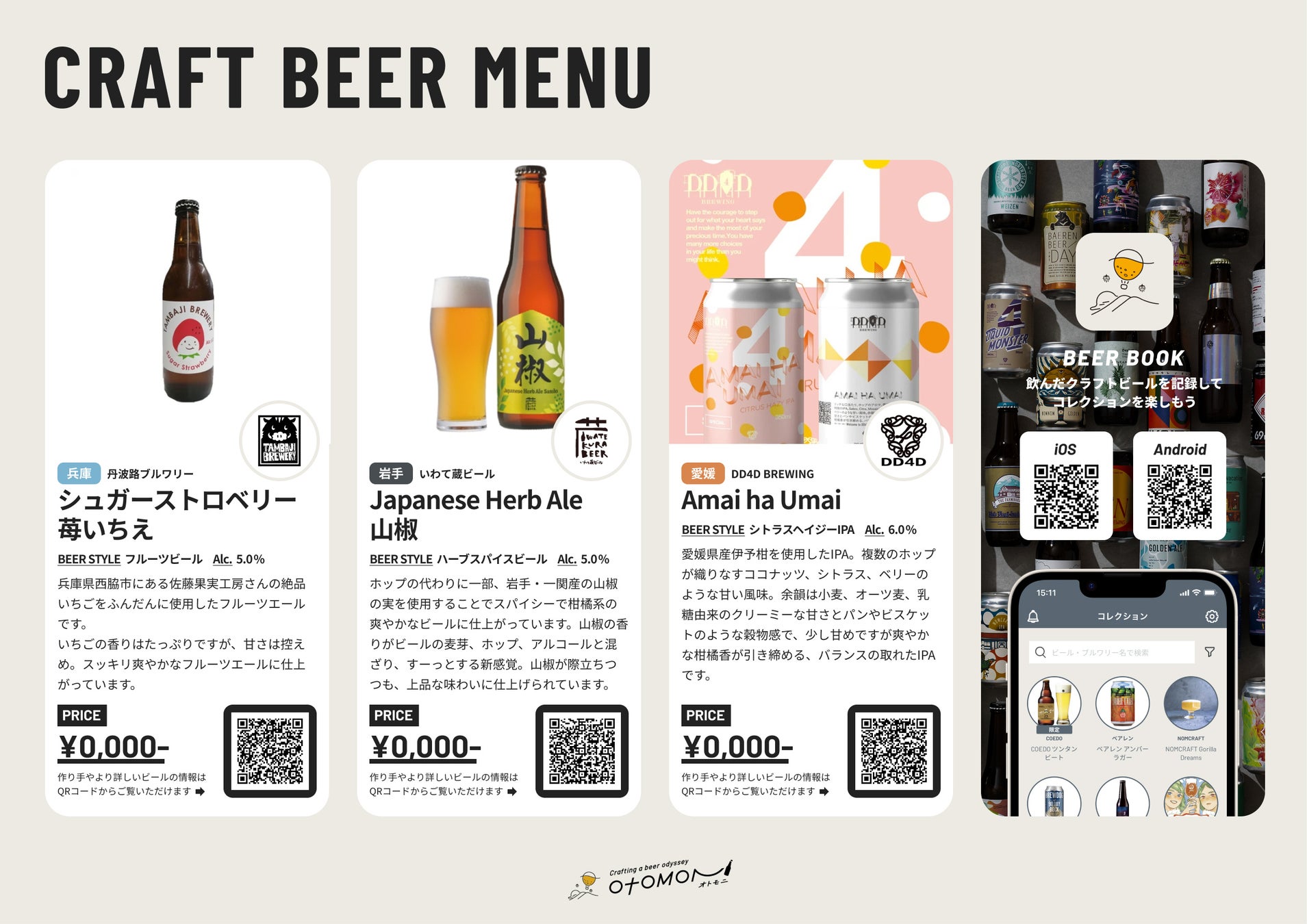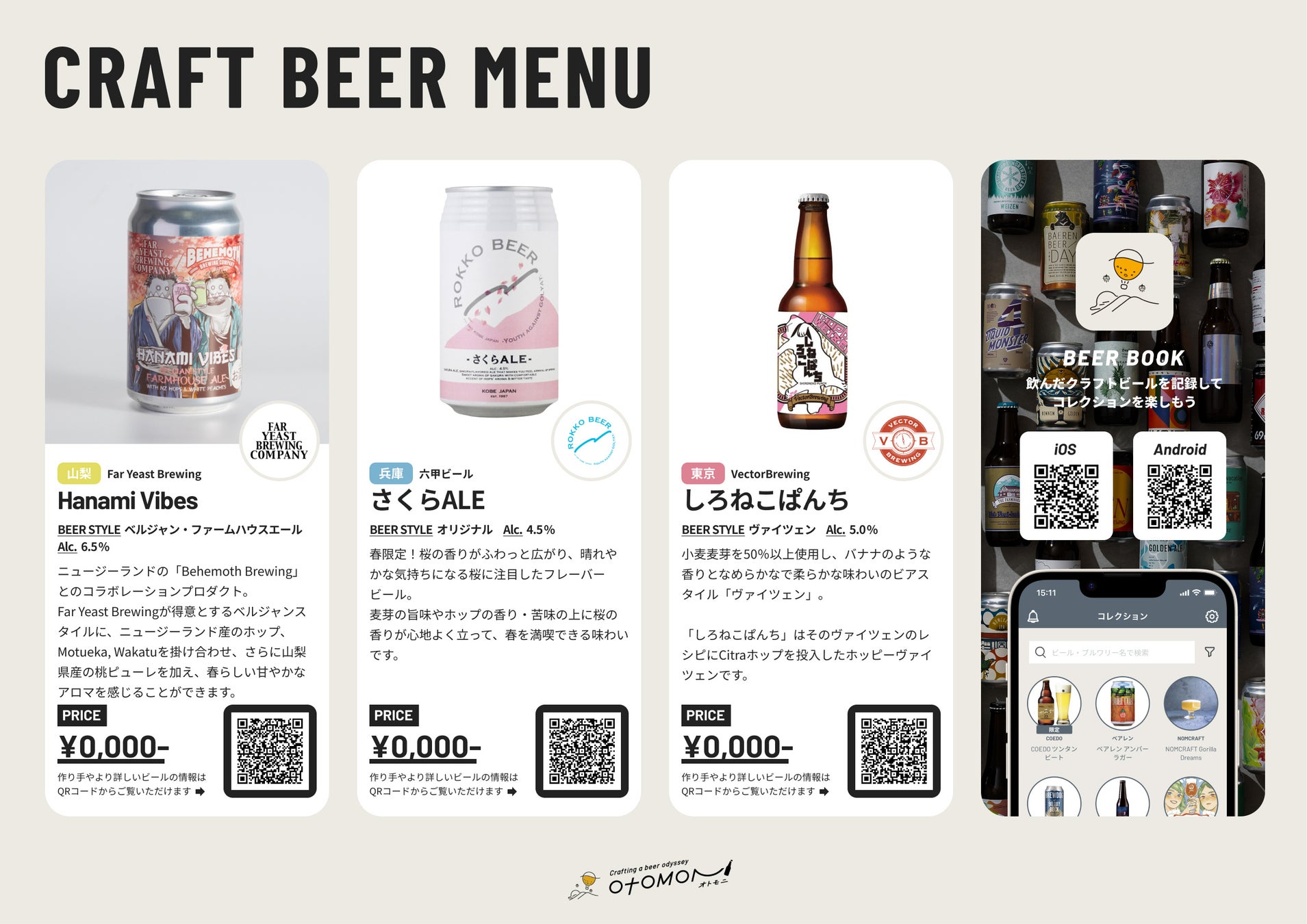 上記ラインナップよりお好きな銘柄をお選びいただき、お店専用のビールメニューをオトモニが無償で作成いたします。※2