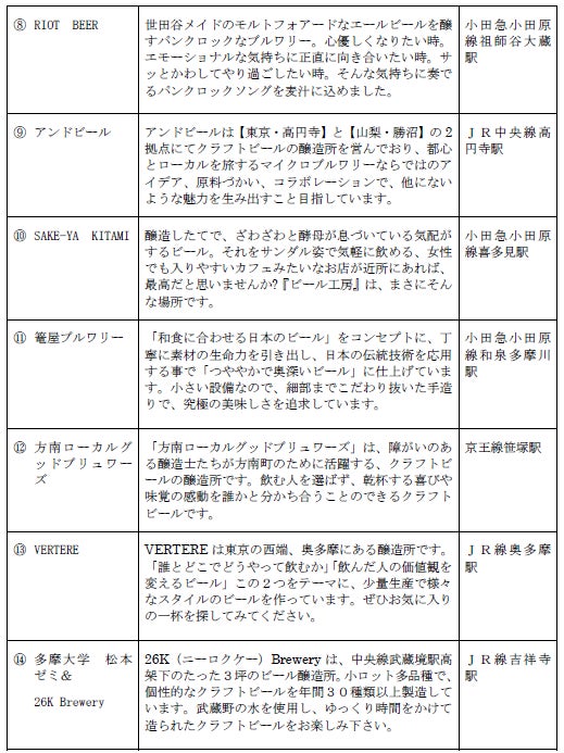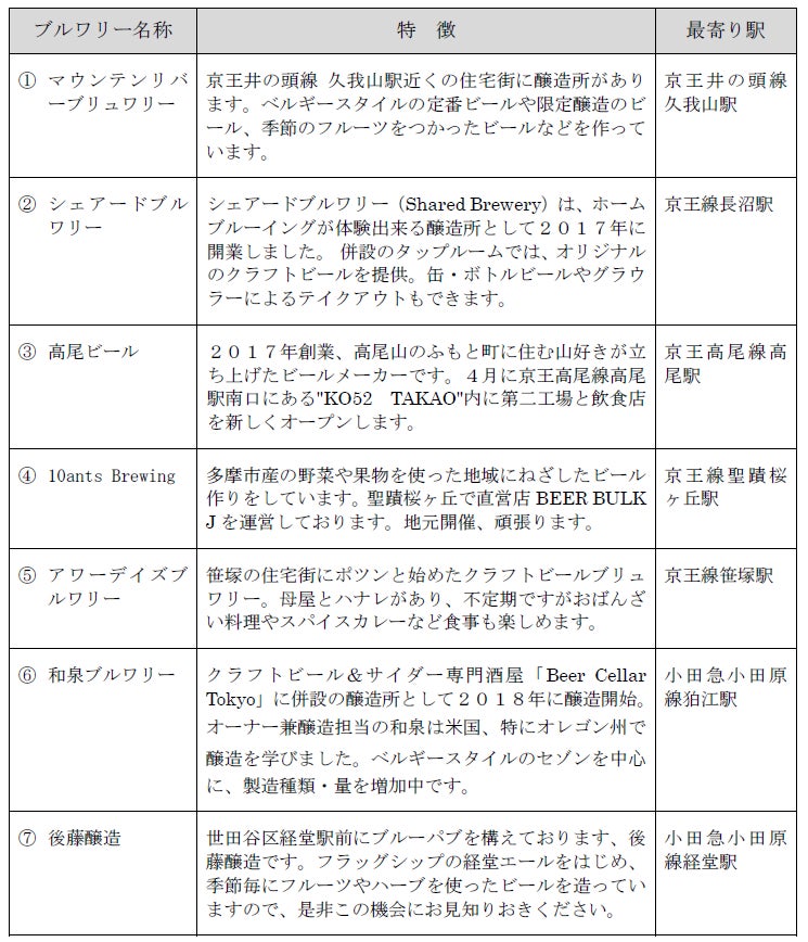 京王線沿線や多摩を代表するブルワリーがせいせきに集合!