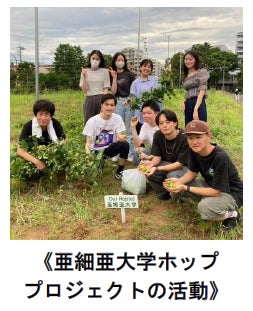 亜細亜大学武蔵野キャンパスで、武蔵野産ホップを育成しているプロジェクト。ホップの苗植え、水やり、収穫、ビールを製造・販売します。太陽の下で地域の皆様の協力を得てキャンパスから美味しさと夢を発進しています。武蔵野市にある「亜細亜大学」のAUHP(Asia University Hop Project)では、2022年からビールの原料のホップを「26K Brewery」と共同で育成。AUHPの学生が日々の育成管理を行い収穫された新鮮な生ホップを使用し、毎年亜細亜大オリジナルクラフトビールを26K Breweryで醸造しています。