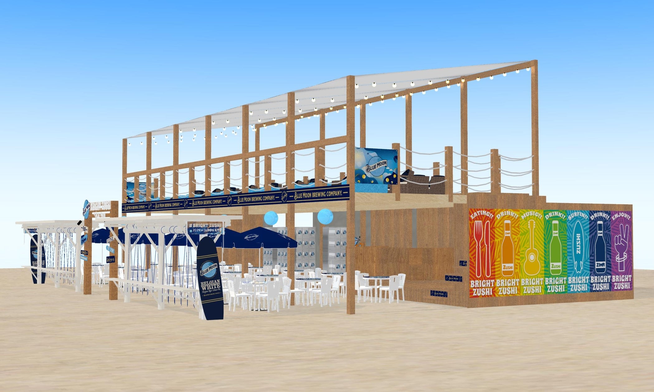 白鶴酒造株式会社は、米国No.1クラフトビール(※1)「BLUE MOON」と共にラグジュアリーな大人の雰囲気と音楽が楽しめる海の家「BRIGHT ZUSHI by BLUE MOON」を神奈川県逗子海岸に2024年6月28日(金)~9月1日(日)の期間限定でオープンします。同店は、シンガーソングライター瑛人さんと横浜の50’sアメリカンダイナーのPENNY’S DINERと共同で出店します。