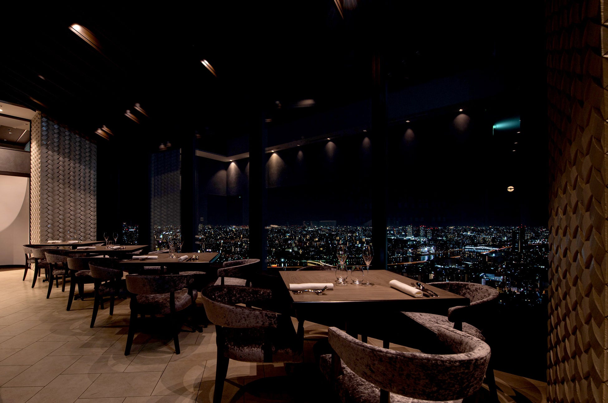 店内は72席の客席がある広々とした空間で、高さ150mという非日常空間で都心のパノラミックな眺望。高級感あふれるシックな色調に、各所に散りばめられた古伊万里などの調度品が交わるラグジュアリーな雰囲気は、誕生日や記念日などの特別な日に最適。アニバーサリープランなどもご用意しておりますので、お祝いムードも演出できます。さらに、プライベートを重視する方には2名から8名まで使用可能な個室もございます。