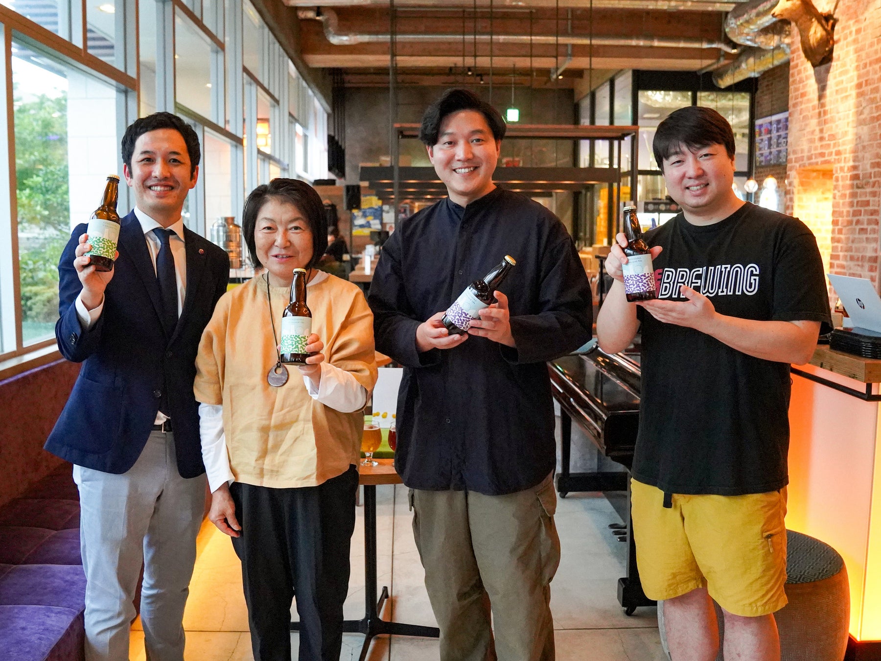 左から、横浜髙島屋和洋酒売り場バイヤー:國廣尚矢、横濱ワイナリー株式会社代表:町田佳子、株式会社Beer the First代表取締役:坂本錦一、REVO BREWING醸造長:水沼泰樹