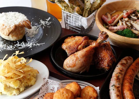 定番料理をたっぷり味わいたい方に。「国産伊達鶏ローストチキン」や「職人ソーセージ」、「森のヤッホー!サラダ」など、よなよなビアワークスの定番メニューが勢揃い。人気のクラフトビール6種が2時間飲み放題です。